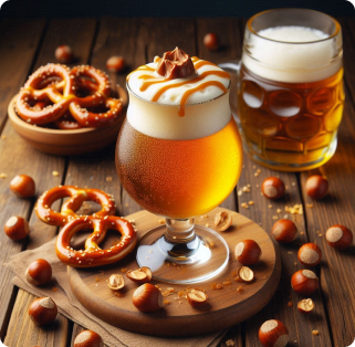 Een volle tripel met een romige hazelnootsmaak en een zoete karameltint. Een